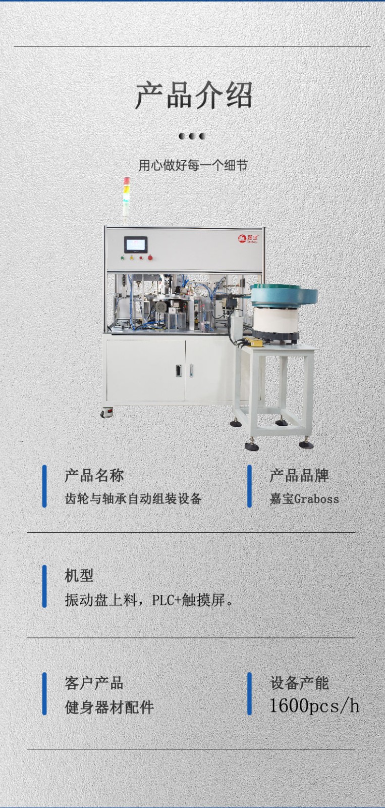 設備全自動作業,振動盤上料,自動完成培林組件自動組裝。觸摸屏采用威綸通7寸高分辨率彩屏、全中文操作界面,易學易用。節省勞動力,大大提升工作效率。操作簡便,啟動后只需投放待組件產品即可。